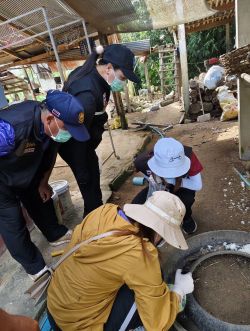 ลงพื้นที่ควบคุมโรคไข้เลือดออกและสำรวจลูกนำ้ยุงลาย ณ หมู่ที่10 บ้านห้วยอื้น วันที่ 22 ตุลาคม 2568 [ 15:18 น. ] เข้าชม 23 ครั้ง พิมพ์ ย้อนกลับไปที่ : คุณภาพชิวิตและสังคมเพื่อให้ประชาชนอยู่เย็นเป็นสุข หัวข้อ : ลงพื้นที่ควบคุมโรคไข้เลือดออกและสำรวจลูกนำ้ยุงลาย ณ หมู่ที่10 บ้านห้วยอื้น วันพุธที่ 22 ตุลาคม 2568 เวลา 09.00 น. นายจอมฟ้า แสงอ้าย รองนายกองค์การบริหารส่วนตำบลเทอดไทย รักษาราชการแทน นายกองค์การบริหารส่วนตำบลเทอดไทย มอบหมายให้ งานสาธารณสุขและสิ่งแวดล้อม ร่วมกับ เจ้าหน้าที่โรงพยาบาลแม่ฟ้าหลวง/รพ.สต.บ้านเทอดไทย/ผู้นำชุมชุม/อสม. ลงพื้นที่ควบคุมโรคไข้เลือดออกและสำรวจลูกนำ้ยุงลาย ณ หมู่ที่10 บ้านห้วยอื้น อำเภอแม่ฟ้าหลวง จังหวัดเชียงราย อัลบั้มภาพ